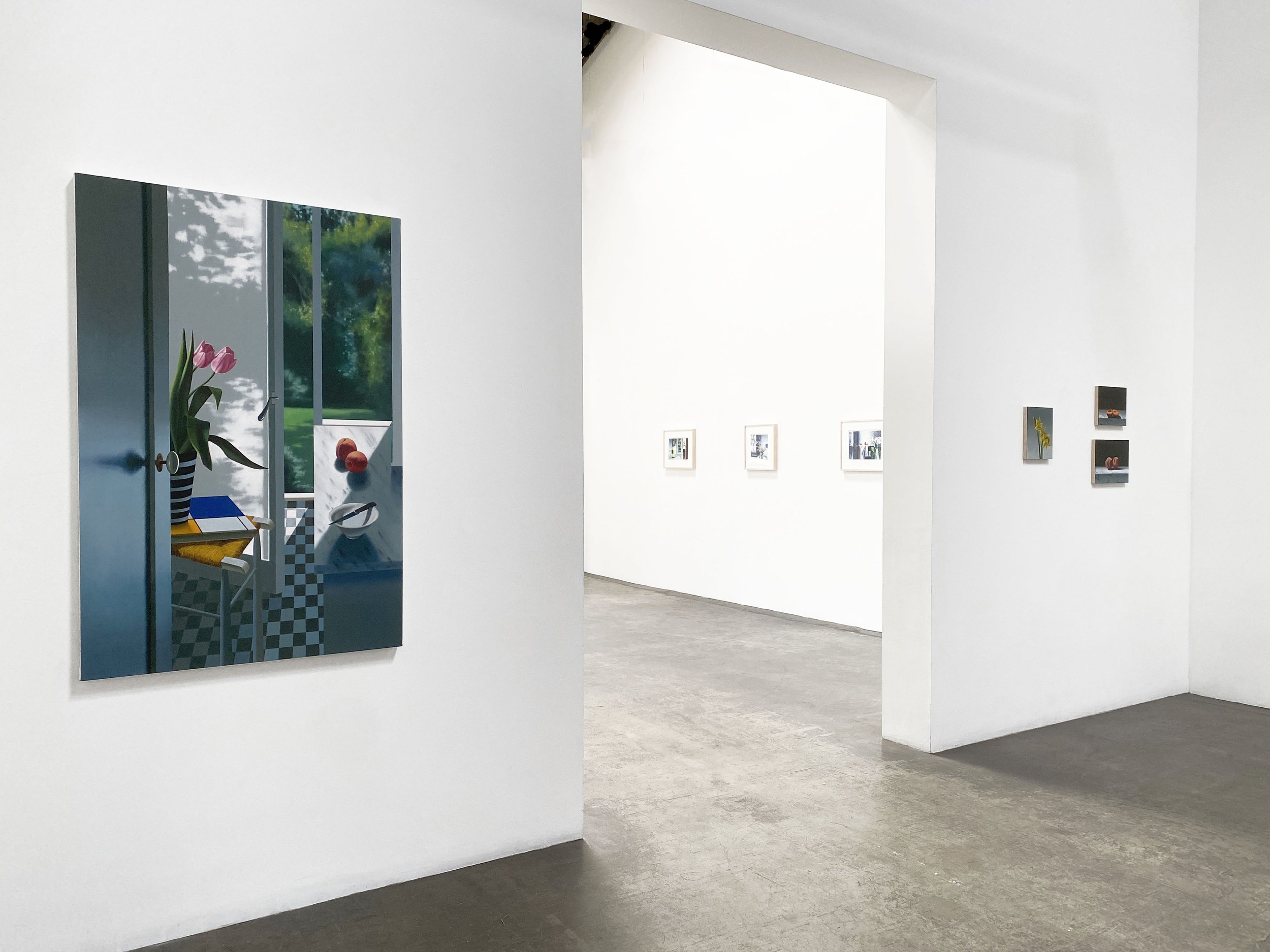 Cohen employs a distinct visual vocabulary of repeated imagery, motifs and objects reimagining them in infinite arrangements and environments. And while absent of any figures, these spaces unquestionably infer human presence. Geometric networks of windows, doorways and flattened hallways are mainstays of the paintings. This compositional architecture being reminiscent of Richard Diebenkorn’s Ocean Park series is again emblematic of Bruce Cohen's keen art historical sensibilities. He executes mastery of the subject and uses this to his advantage, constantly perfecting his process to stunning effect culminating in an unhurried and sumptuous composition.